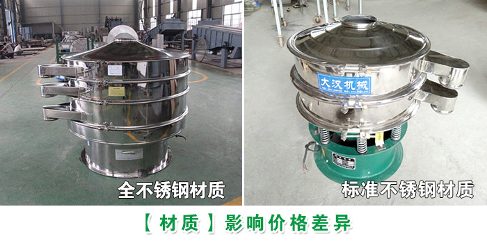 有機化肥不銹鋼振動篩是采用不同材質(zhì)的不銹鋼制作而成。不銹鋼材質(zhì)分為201、304、316和316L。這四種不同材質(zhì)的不銹鋼之間的差價是500-2000左右。不銹鋼振動篩又分為全不銹鋼材質(zhì)和標準不銹鋼材質(zhì)兩種。全不銹鋼材質(zhì)的振動篩全機身采用不銹鋼制作而成。標準不銹鋼材質(zhì)的振動篩是與物料接觸的部位采用不銹鋼材質(zhì),相對于全不銹鋼材質(zhì)的而言,價格相差600元左右。