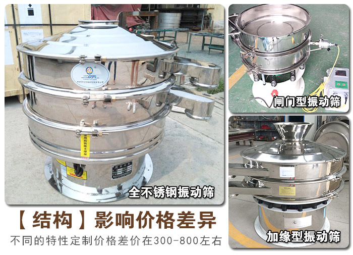 有機化肥不銹鋼振動篩對客戶的不同篩分需求支持特殊結(jié)構(gòu)的設(shè)計定制,如“加緣型、閘門型、或是框體、底座加高,進料口加料斗等。不同的特性定制價格差價在300-800左右。