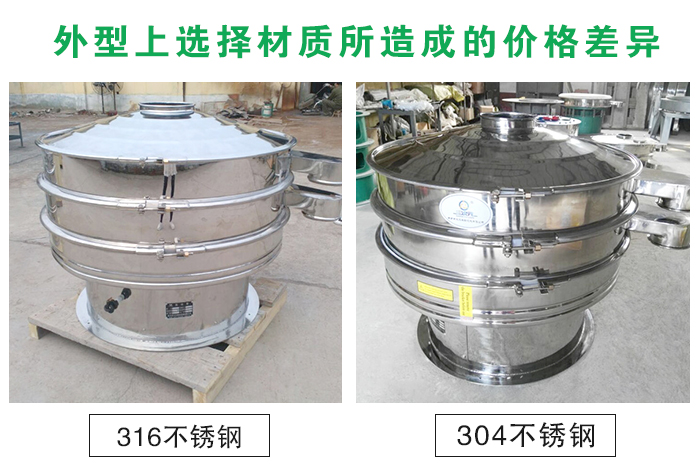 不銹鋼振動(dòng)篩在整體結(jié)構(gòu)上分為整機(jī)均采用不銹鋼制成和與物料接觸部分為不銹鋼材質(zhì)底座為碳鋼材質(zhì)兩種,兩者差價(jià)在2000元以上,全不銹鋼材質(zhì)整體美觀,適合有高需求的客戶使用,與物料接觸部分為不銹鋼材質(zhì)可以在保證物料干凈衛(wèi)生的基礎(chǔ)上為客戶節(jié)省成本。