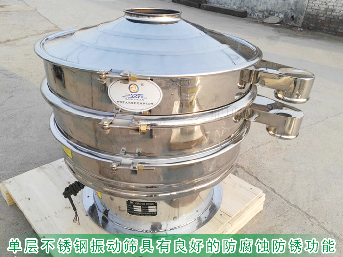 單層不銹鋼振動篩采用304不銹鋼材質精制而成,具有良好的防腐蝕防銹功能,也可耐高溫,內外拋光打磨處理,內部無焊接點,表面平整無凹陷或高低起伏的波浪面,無扭曲變形的現象,整機拆卸方便減少篩分除雜后清洗消毒的難度方便清理。