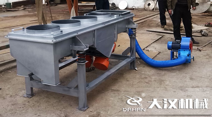 大漢機(jī)械在原有的基礎(chǔ)上加裝風(fēng)機(jī),可用于高溫度物料,在進(jìn)行篩分的同時也可以進(jìn)行散熱處理,防塵蓋上留有圓孔,目的也是幫助其更好的降溫,既有效的進(jìn)行了防塵,也可以加快降溫的速度。