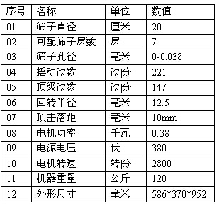 頂擊式標(biāo)準(zhǔn)振篩機(jī)又名頂擊式標(biāo)準(zhǔn)振篩機(jī),擊式振篩機(jī)配套試驗(yàn)篩規(guī)格為¢200mm。符合建材、地質(zhì)、交通,化工等等行業(yè)有關(guān)測(cè)試規(guī)范和要求。利用偏心的原理使機(jī)器的平臺(tái)面發(fā)生有規(guī)律震動(dòng)和頂擊,主要配套標(biāo)準(zhǔn)分樣篩使用,代替手工篩,篩分物料的級(jí)別。具有時(shí)間標(biāo)準(zhǔn)、力度、頻率均勻的優(yōu)點(diǎn)以達(dá)到良好的篩分效果,適用于建筑、公路,地質(zhì)、冶金、化工、煤炭、磨料、食品、飼料,醫(yī)藥等部門的實(shí)驗(yàn)室或化驗(yàn)室對(duì)顆粒物料進(jìn)行篩分分析,該機(jī)可以配各種規(guī)格的方孔、園孔標(biāo)準(zhǔn)套篩,是生化實(shí)驗(yàn)室、分析室、教育科研的必備設(shè)備。