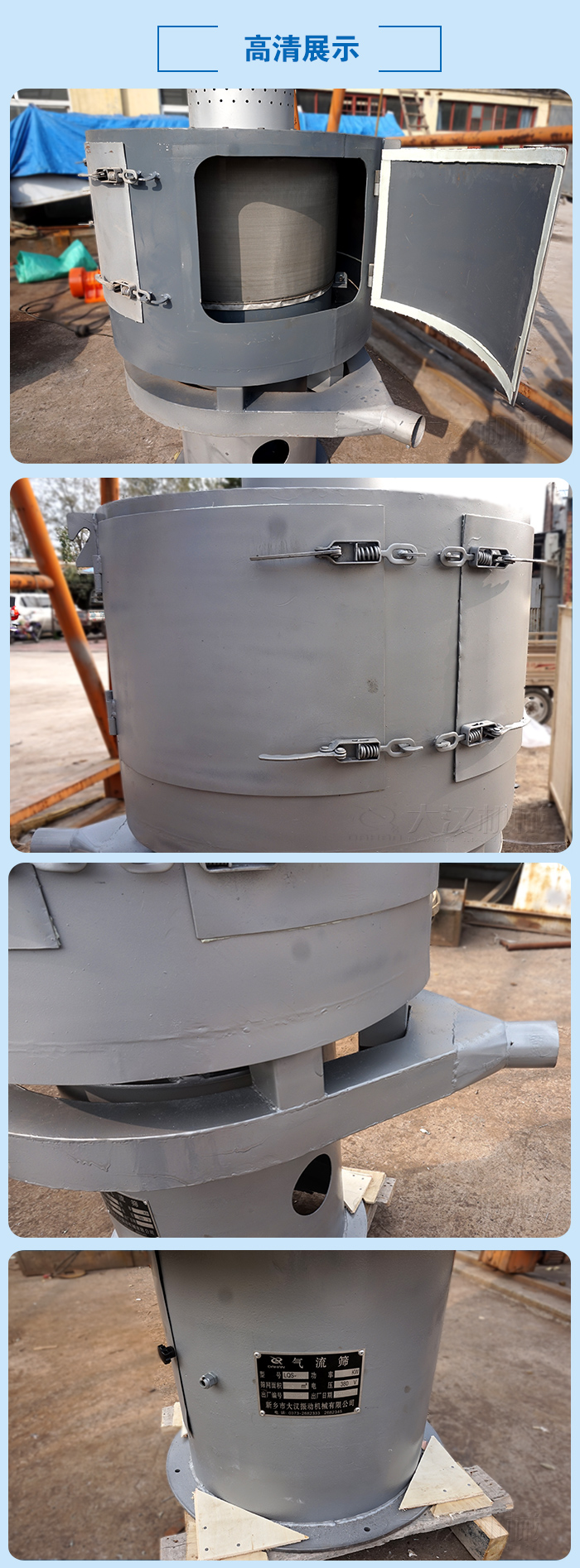 1、粉末顆粒立式氣流篩針對80-530目的粉末物料均可高效篩分,篩分效率可達到95%以上,產(chǎn)量是普通振動篩的5-10倍;